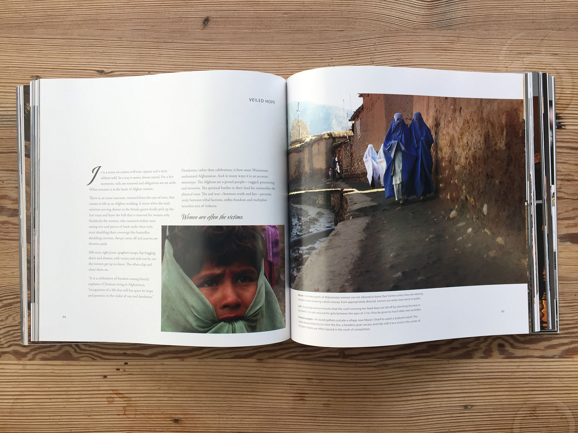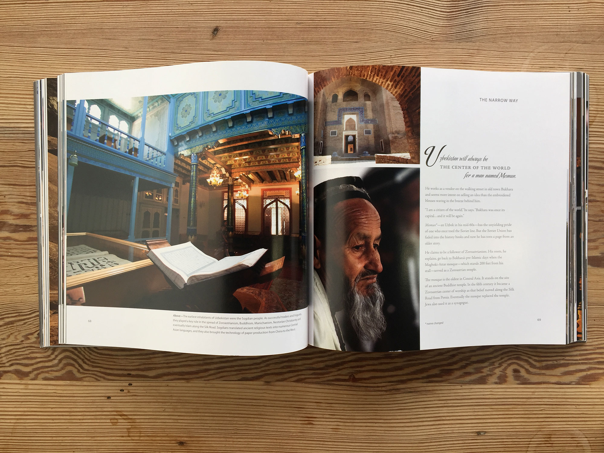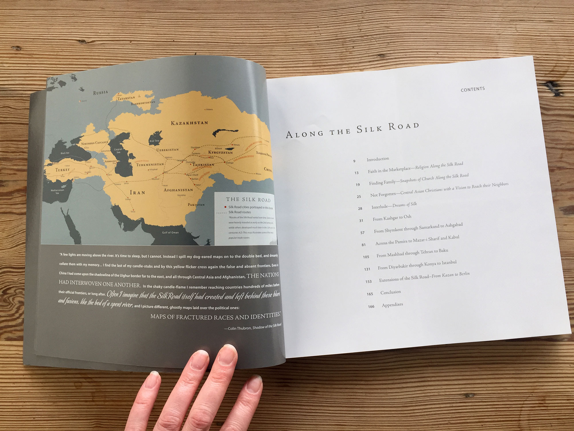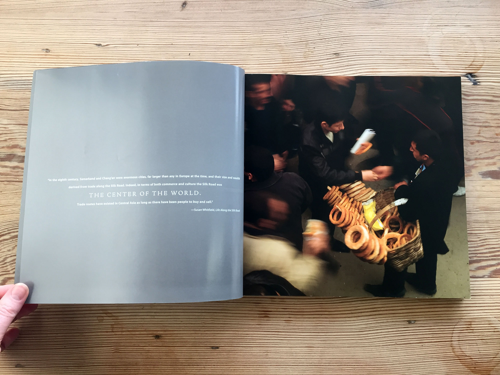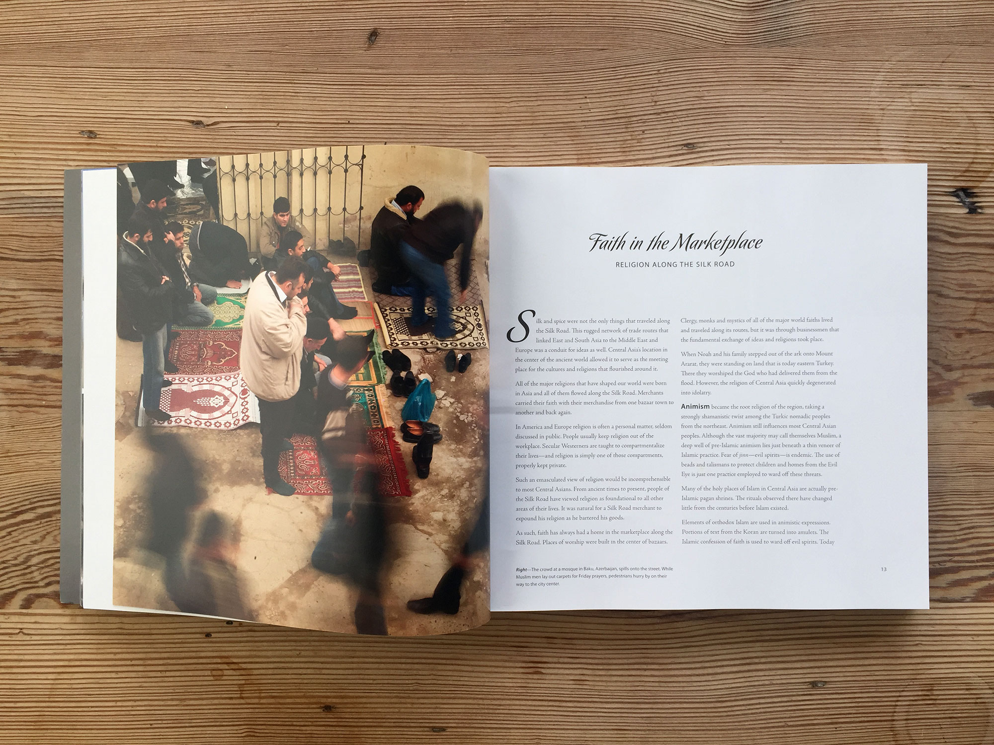 Along the Silk Road is a 172-page full-color display book and traveling exhibit that grew out of desire to draw back the curtain obscuring the peoples of the region and their rich cultures. It features the work of 12 photographers and 7 writers. I was the project coordinator, managing editor, and designer. I was responsible for the photo selection and page layouts.